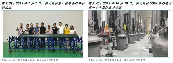 •公司单晶硅生产基地建设进度创业内纪录。根据弘元新材官方微信公众号披露,2019年5月13日,弘元新材5GW单晶项目签约仪式在包头市政府举行。2019年5月20日,弘元新材料(包头)有限公司注册成立,注册资本5亿元。2019年6月13日,弘元新材5GW单晶项目现场推进会顺利举行。2019年7月7日,弘元新材第一根单晶硅棒拉制完成(公司租用阿特斯厂房)。