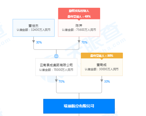 瑞丽航空的注册资本为6亿元,当时云南景成集团为独资股东。