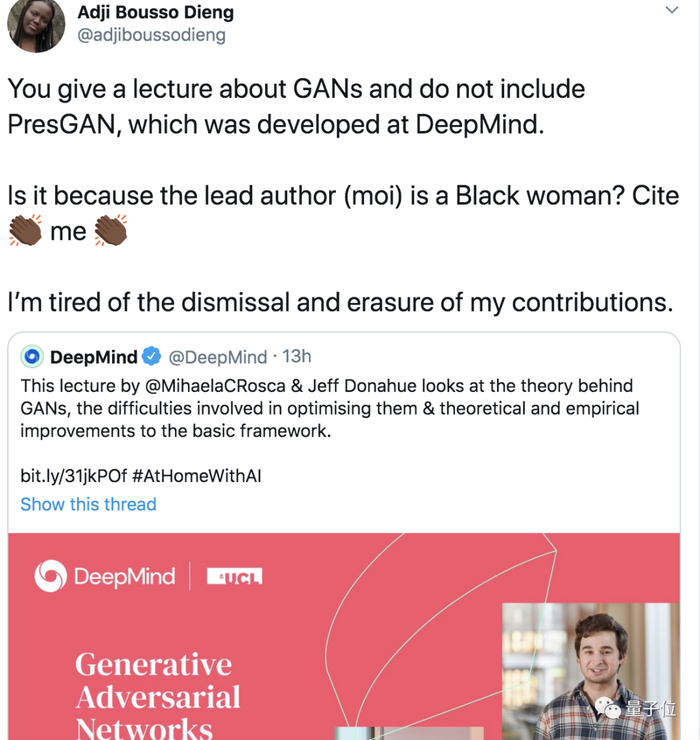指控者是哥伦比亚大学的一位黑人女性研究员、PresGAN 作者,Adji B. Dieng(以下简称A姐)。