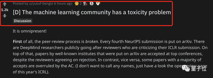 一位名为yusuf-bengio的网友在Reddit的机器学习社区发帖,批驳当下机器学习圈子的8大毒瘤(toxicity problem)。帖子发出5小时,热度已经1.2k。