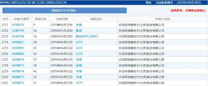 相较于股权,乐视网的商标就值钱多了。