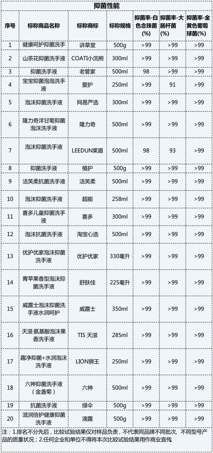 疫情爆发以来,公众对于个人卫生防护的意识显著提高,与之相关的抗(抑)菌洗手液需求也激增,抗(抑)菌洗手液除了去污清洁,还有一定的杀菌、抑菌作用,因此受到消费者青睐。但目前市场上此类商品品牌众多,消费者如何才能选购到安全又有效的产品?近期上海市消保委对20款抗(抑)菌洗手液样品开展了比较试验。