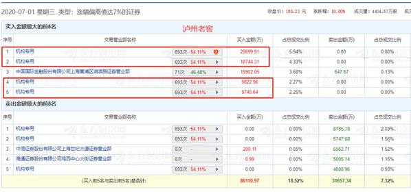 四机构席位涨停板抢6.4亿老窖