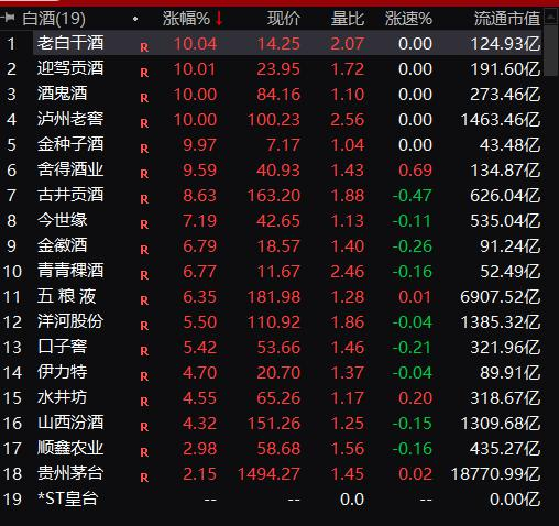 白酒股集体高潮