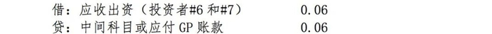 日记账分录4:新投资者(投资者#6和#7)的现金实缴与原有投资者和GP账户的结算(投资者#1、#2、#3、#4和#5):