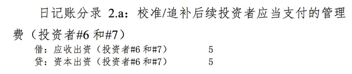 日记账分录2.a:校准/追补后续投资者应当支付的管理费(投资者#6和#7)