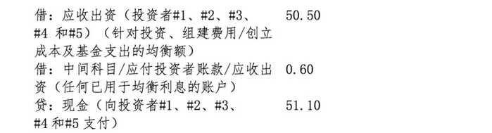 日记账分录1:投资、组建费用/创立成本及合伙支出/基金支出(不包括管理费/优先收益)的均衡额。
