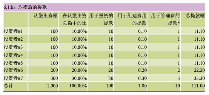 下表是对均衡计算的简单举例说明,例子中投资者#6和#7 为新加入投资者。