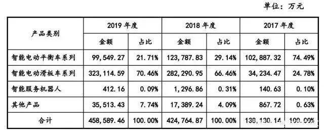 九号机人将研发重心放在电动平衡车和电动滑板车上,这两类产品占同期销售总额的比例分别为99.27%、95.6%和92.17%,而机器人业务占比重不足1%。