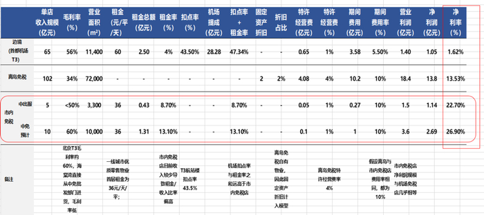 1、市内免税店净利率有望超20%,高于机场免税店。