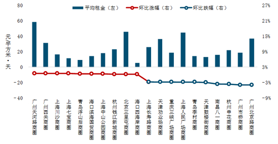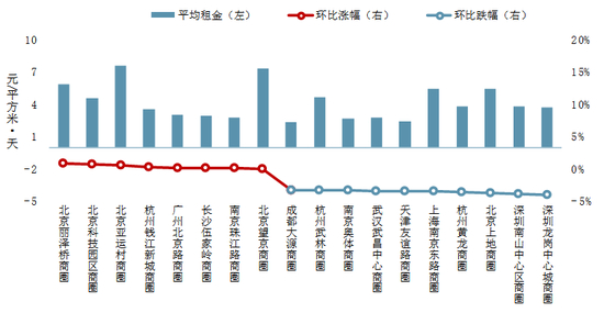 (2)租金涨跌幅较大的商圈
