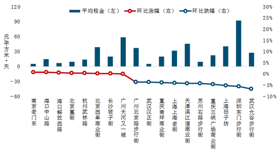 (2)租金涨跌幅较大的商业街