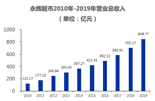 自2010年上市至2019年,永辉超市营收的年复合增长率达23.92%,归属于上市公司股东的净利润年复合增长率达19.89%,保持了长期稳健的增长能力和盈利能力,营收规模距离千亿元大关已仅有一步之遥。