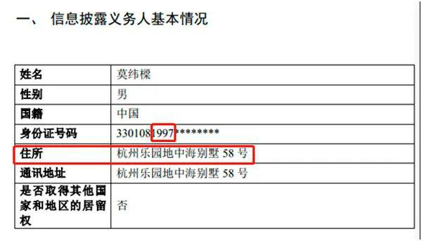 莫纬樑出生于1997年,今年刚刚23岁,其住所和通讯地址均为“杭州乐园地中海别墅58号”。