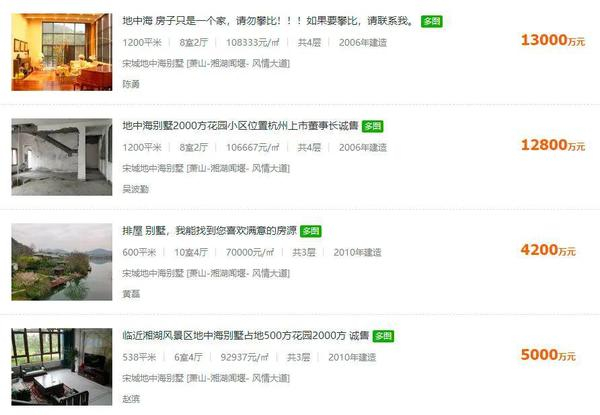 杭州安居客数据显示,该别墅区本月均价超过12万元/平米,面积在305平米至1000平米不等,花园面积1000平米至4500平米,整体价格动辄数千万元,过亿也不少见。