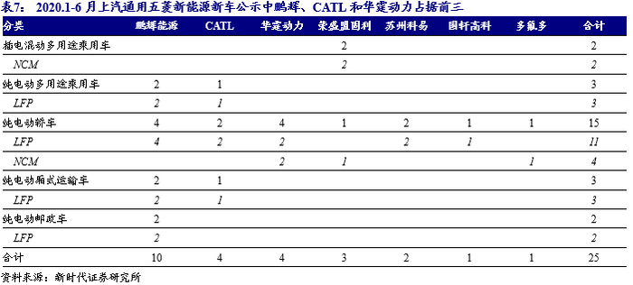 宁德时代、鹏辉能源给上汽通用五菱的配套多、出货量大