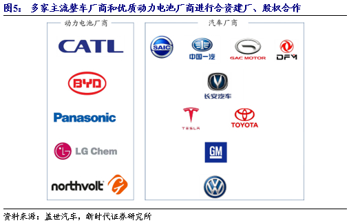 目前,除比亚迪外的整车厂基本为外采电池,未来外采和合资产能供应为主要方式。整车厂的动力电池供应有三种模式,即自供、合资产能供应、外采。目前,仅比亚迪拥有自主产能。由于动力电池厂的先发优势和电池技术不断的迭代,除比亚迪外的整车厂主要采取外购保障供给。目前,动力电池优质产能稀缺,整车厂也在通过合资建厂、参股优质动力电池厂的方式来保障供应链安全。
