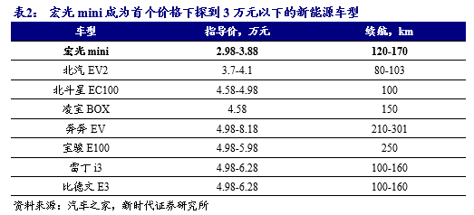A00级别纯电宏光mini价格亲民,竞争力强。5月28日,A00级别宏光mini开启预售,价格2.98万元,成为首个价格下探到3万元以下的新能源汽车,直击低速车价格区间。根据第一电动的调查结果显示,59%的人关注五菱宏光mini最初就是被这个2.98万元起的价格吸引。