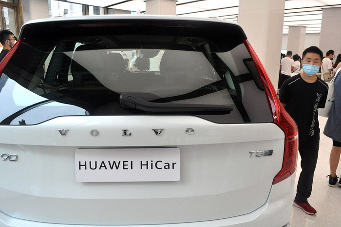 2020年6月25日,上海,华为全球旗舰店内,搭载华为Hicar智能车载系统的沃尔沃概念车。
