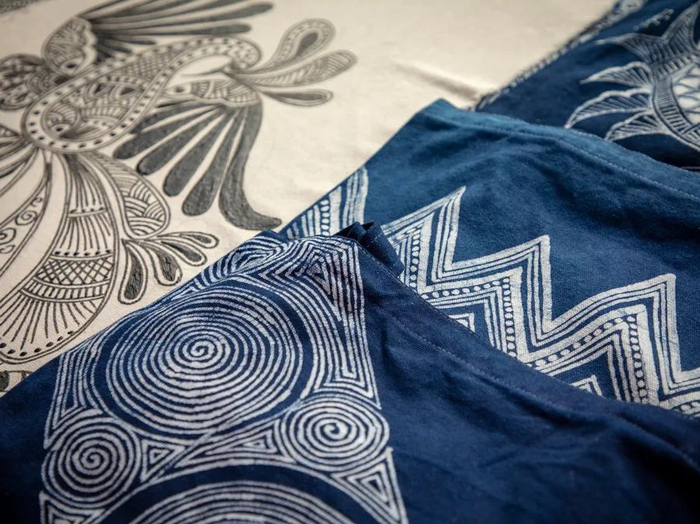 所有的纹理都由蜡染手艺人,手工绘制,每一件上面的图案都不尽相同,所以每件T恤都是独一无二的存在。
