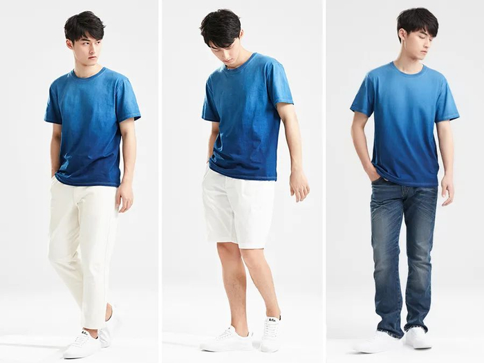 这件T恤的渐变颜色,在光线明亮的地方看尤为夺目,初次尝试蓝染的人选它准没错。