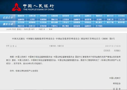 7月3日,作为资管新规的重要配套细则,央行、银保监会、证监会和外汇局联合发布《标准化债权类资产认定规则》(下称“《认定规则》”),并于2020年8月3日起施行。