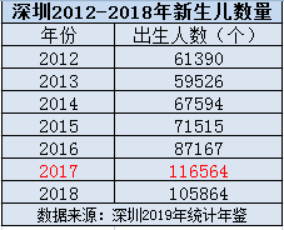 深圳2019年统计年鉴提供的数据显示,在2010年,深圳新生人口为40342人,而到2017年,已攀升至11.66万人,随后的2018年虽略有下滑,但仍然维持在10万人以上。