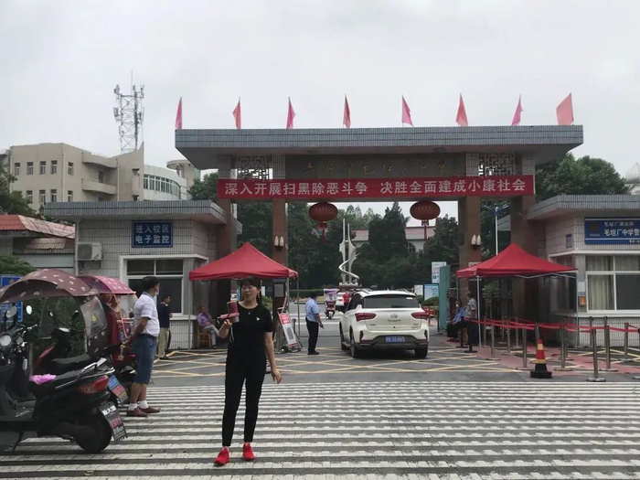 7月5日,毛坦厂中学最后一批高考生赴考场,家长们在校门口送别。汪鵬翀 图