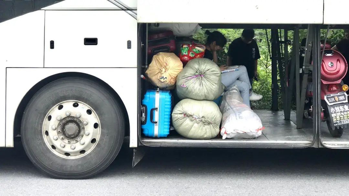 离校日,家长和学生一起乘车赶往公交车站。