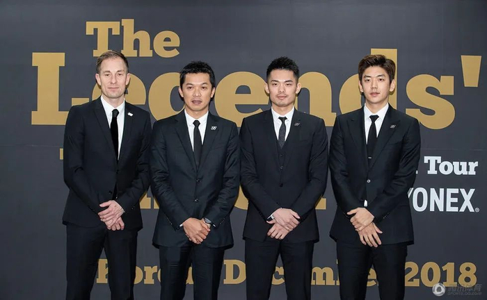 2018年12月1日,盖德、陶菲克、林丹和李龙大(从左至右)亮相韩国仁川,参加2018“王者之志”羽毛球表演赛韩国站系列活动。