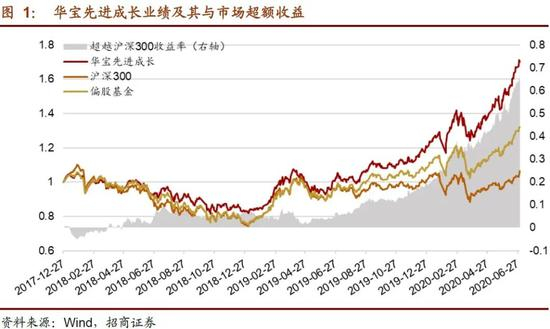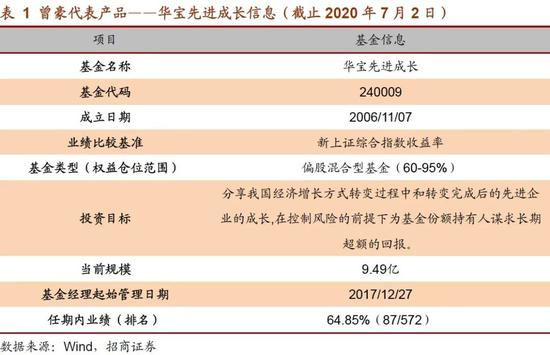 本章主要对曾豪的代表产品——华宝先进成长的业绩表现、行业偏好、风格、业绩归因等多方面展开分析,分析的时间区间为2017年12月27日至2020年7月2日。未特殊说明情况下,分析中提及基准指数为沪深300 指数,比较的样本为所有的股票型基金与偏股混合型基金。
