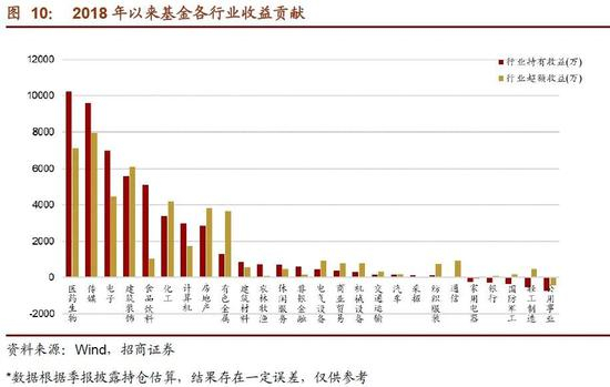 模型进一步统计2018年年初以来基金的在各个行业的收益贡献,估算结果如下图所示: