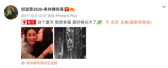 希林娜依·高回忆第一次参加比赛的自己,“初生牛犊不怕虎,在镜头面前也不知道自己在干什么”。但,那却是她人生中最珍贵的三个月,也是她真正的十八岁成人礼。直到如今三年过去,她的微博置顶仍定格于2017年10月9日,她与那英、“小二班”一起站上鸟巢舞台的那一刻。“这个夏天,我很幸福,是时候长大了。”