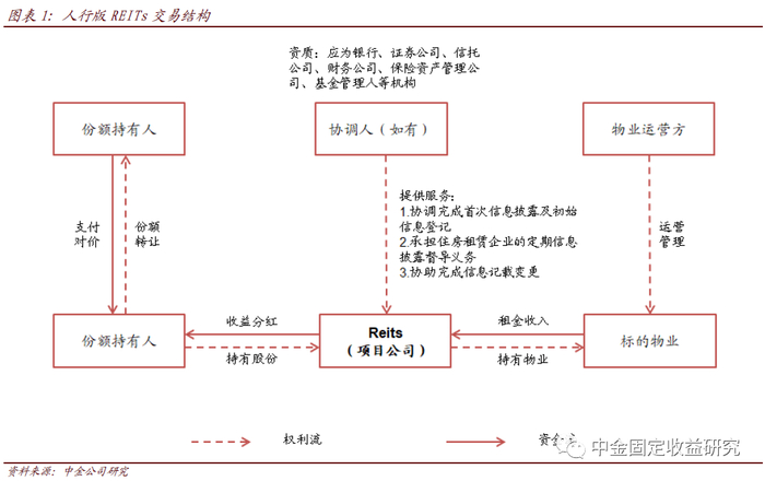 下图显示了一个典型的人行版REITs产品的交易结构。