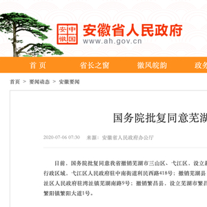 原标题:重磅!国务院批复同意:安徽芜湖撤销4区县,新设3区