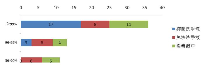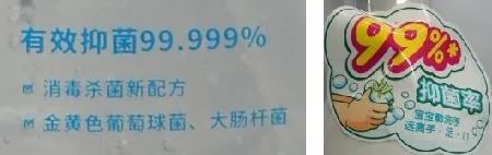 产品宣称上,20件抗(抑)菌洗手液样品和19件免洗洗手液样品在产品包装上均有“抑菌、杀菌、抗菌”等字样,其中9件抗(抑)菌洗手液和5件免洗洗手液样品标明抑菌率。