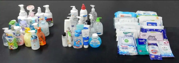 比较试验依据《一次性使用卫生用品卫生标准》《消毒技术规范》等国家强制性标准以及《洗手液》《湿巾》国家推荐性标准,主要对样品的风险物质、消毒效果等进行了测试。