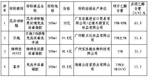 汉施、维特丝等4款洗手液实测乙醇含量与明示不符