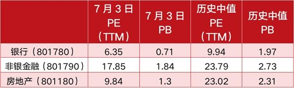 表1 银行、非银金融(券商+保险)、地产估值情况