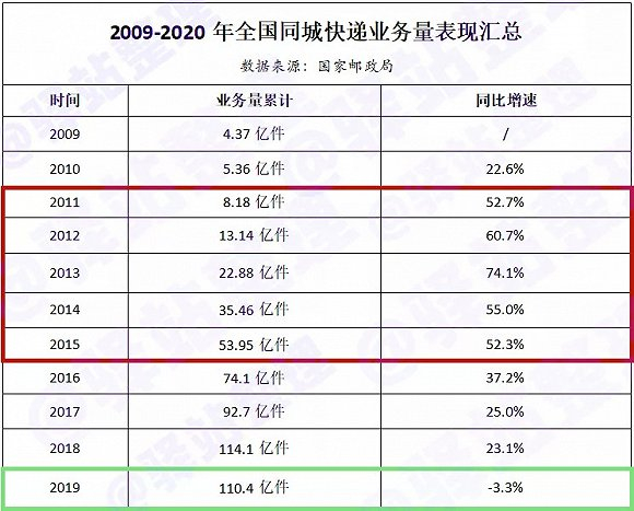 纵观整个2019,唯有同城快递增速为负,量、收“双降”。而这,也应该是自2009年快递纳入行业统计范围,10年来同城快递首次出现“全年负增长”的局面。