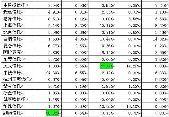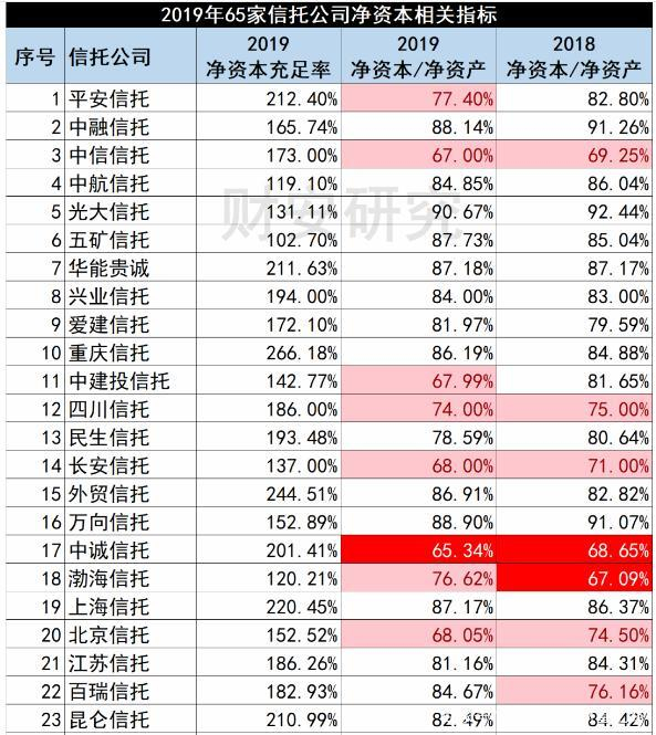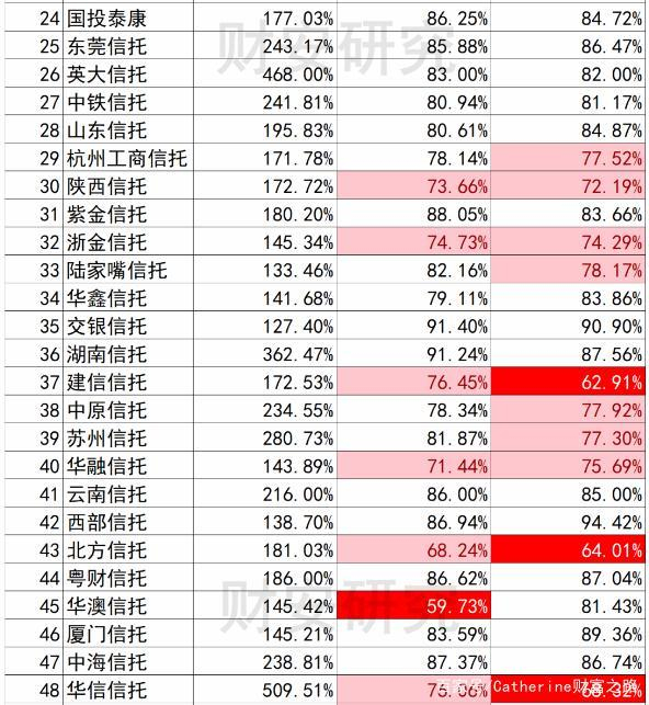 还是说句适用性的问题,越靠前的信托公司,监管指标的适用性越强,因为小信托公司一笔业务就会造成监管指标的大幅波动。上表中,连续两年都飘红的,可能意味着抗风险能力比较差,投资者需要找一个合理解释。