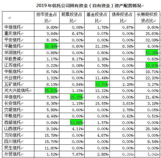 02信托公司固有资金(自有资金)资产配置