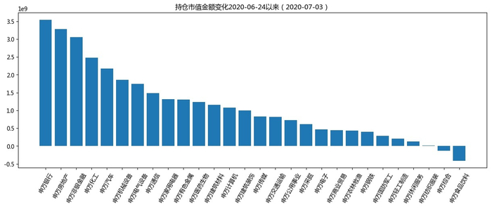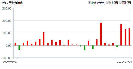 截至2020年7月3日,过去7个交易日北上资金净流入金额较多的行业为银行、房地产、非银金融及化工行业,推动低估值行业估值的均值回归。