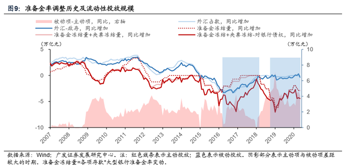 外汇占款对流动性影响更偏长期,故准备金率调整锚定外汇占款同比变动。
