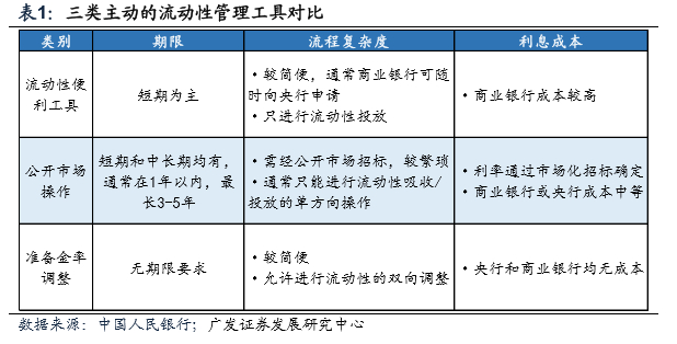 相较公开市场操作及流动性便利工具,降准信号意义强、不可反复调整、一次性释放流动性规模大、释放流动性无期限且无利率成本。公开市场操作投放节奏快、投放精度高、投放流动性具有期限。