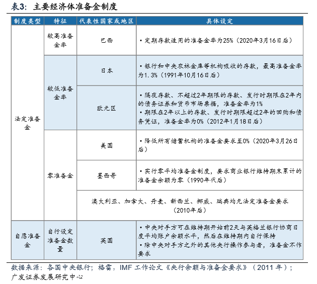例如日本银行主要的存款类型适用的准备金率均低于1.3%,且90年代后再无调整。欧洲中央银行设定的准备金率也在2%以下。澳大利亚、加拿大等国不再要求缴纳法定准备金,美联储为应对疫情冲击将准备金率降低至0%,英格兰银行目前对大部分商业银行不要求缴纳准备金,对少数机构实行“自愿准备金”制度。