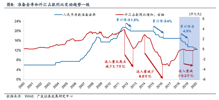 经验上2001年~2017年升降准几乎紧盯外汇占款同比变化。