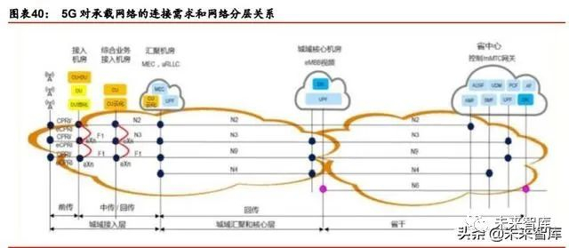 基站回传网络主要依赖光纤网络和微波技术。基站回传(Backhaul)指在移动网 RAN 层, 通过多种物理媒介在基站和核心网之间建立一个安全可靠的传输网络。由于所有客户终端 通过 RAN 接入移动网络、获得移动业务,因此基站回传的网络质量直接影响运营商是否 能够快速响应业务发展需求。从物理层技术来看,未来 5G 网络回传主要依赖光纤和微波 技术,其中光纤技术是目前无线接入网回传的主要物理层技术路线,根据 IMT-2020(5G) 推进组 2018 年发布的《5G 承载网络架构和技术方案白皮书》,5G 中回传网络主要采用 SPN 和 M-OTN 技术方案来部署。而对于一些偏远地区或者光纤网络无法覆盖的地区,运 营商会采用微波无线技术来完成基站回传任务。