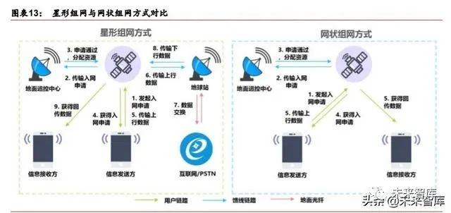 Starlink 采用网状组网架构实现超短时延。Starlink 星座采用的是网状组网架构,将卫星 作为网络传输节点,通过星间链路建立高速带宽通信网络,用户可直接接入卫星互联网网 络,不需要经过地面系统。采用星间链路(网状组网)可以有效减少时延,“星-地-星”时延 约为 15 毫秒,而同类低轨卫星“星-地-星”时延为 50 秒左右。