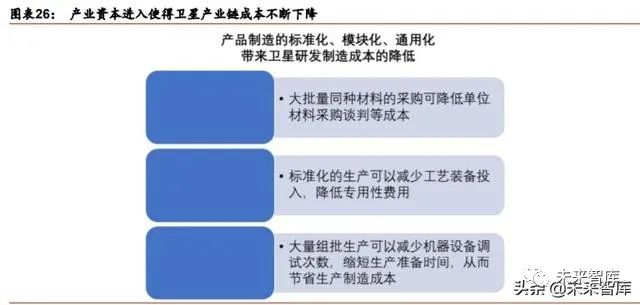 一个产业的成熟离不开两个方面的支持,一个是产业资本的支持,一个是技术升级。从产 业资本层面来看,Starlink 和 OneWeb 的成功使得低轨卫星星座的建设不再不可触及, 大量的卫星被制造和发射,也带动整体卫星制造和发射边际成本的降低。从技术升级方面 来看,元器件和架构的升级使得卫星小型化集成化、软件化定义能力不断提升,不仅有效 地缩短了卫星制造和迭代周期,同时使得卫星兼顾效率的前提下体积不断缩小。